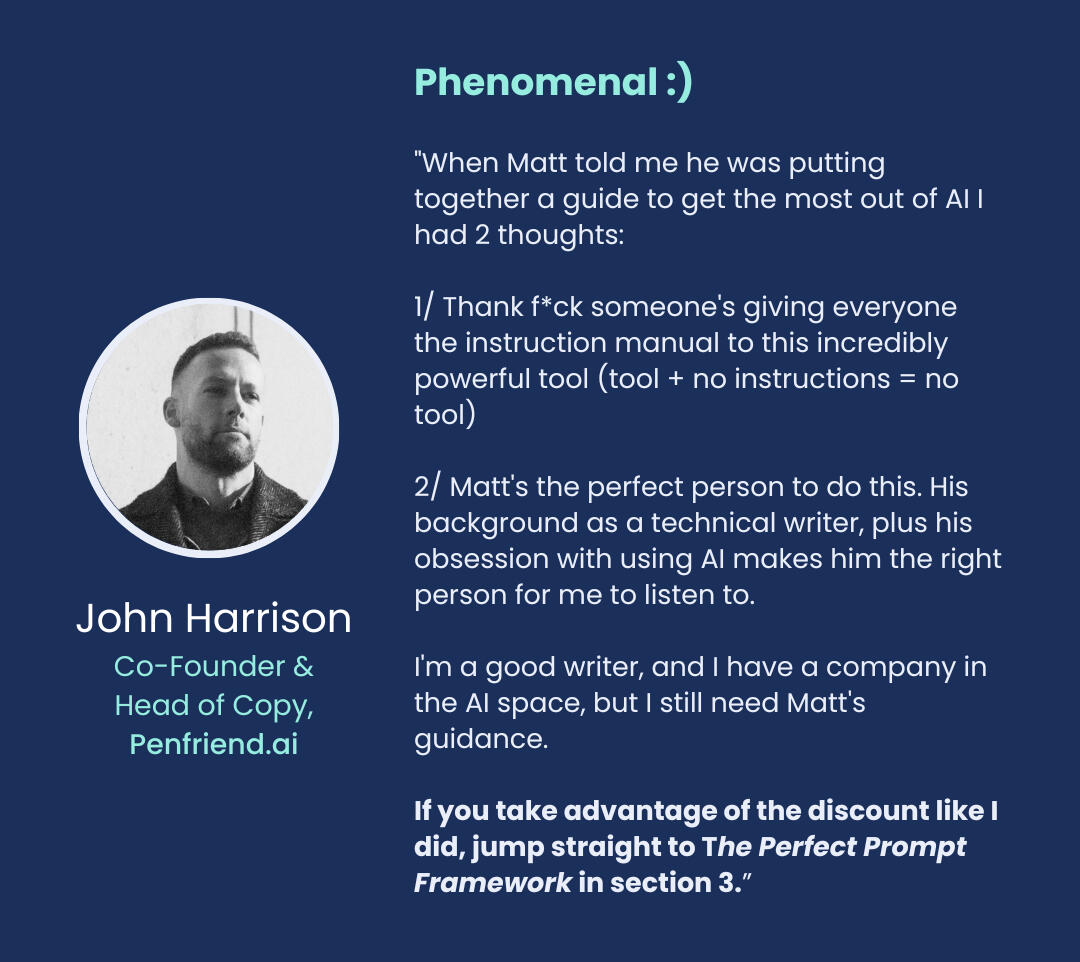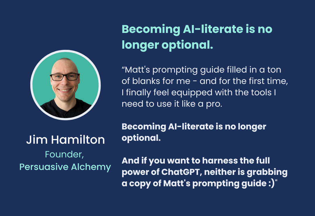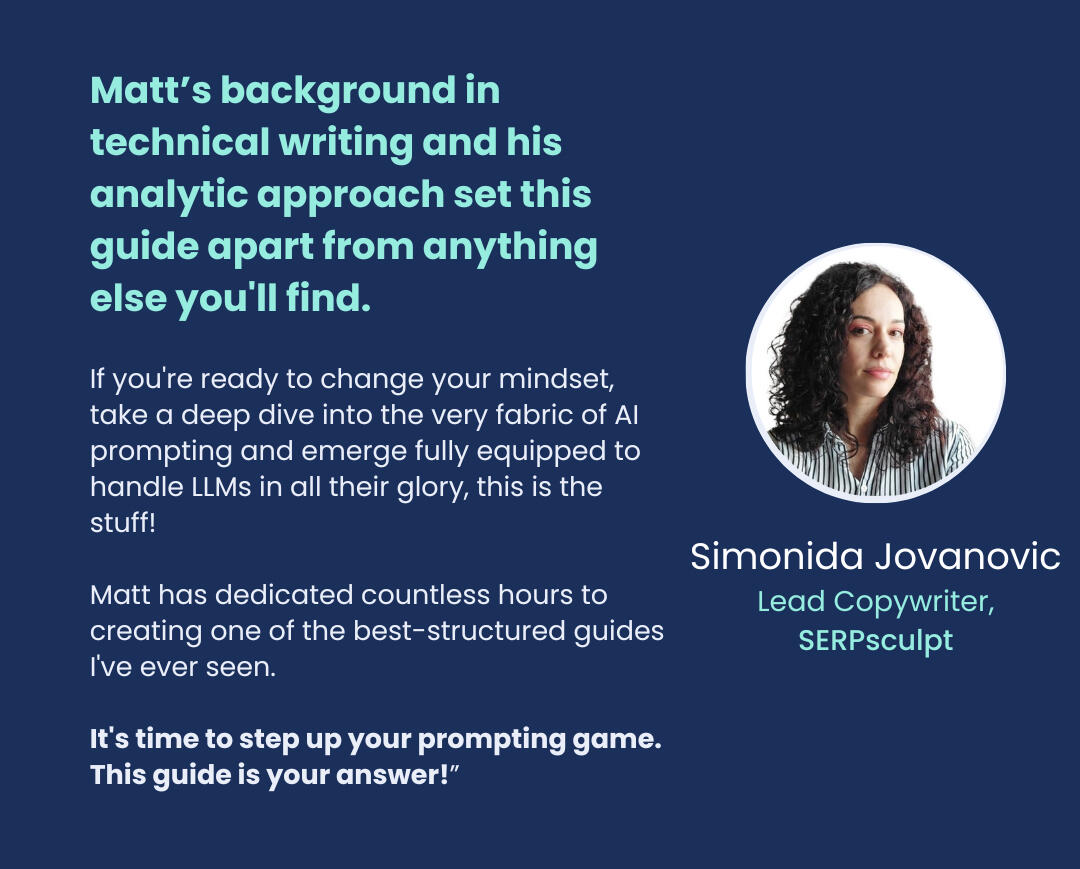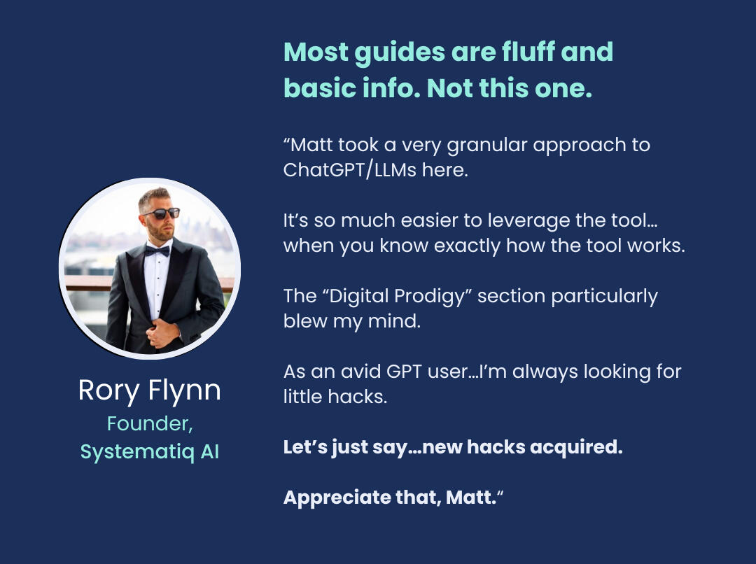 Writing4Robots doesn’t just teach you how to use ChatGPT—it shifts your mindset, so you understand how large language models work and the best ways to interact with them strategically.This cognitive shift sets you up for success working with AI long after you’ve finished the guide.