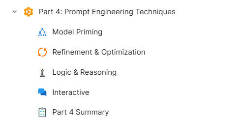 W4R isn’t a generic "how-to" manual. It's a purpose-built actionable playbook designed to take you from foundational concepts to advanced strategies.Each section progressively builds your prompting knowledge and skills, ensuring consistent improvement at every stage.